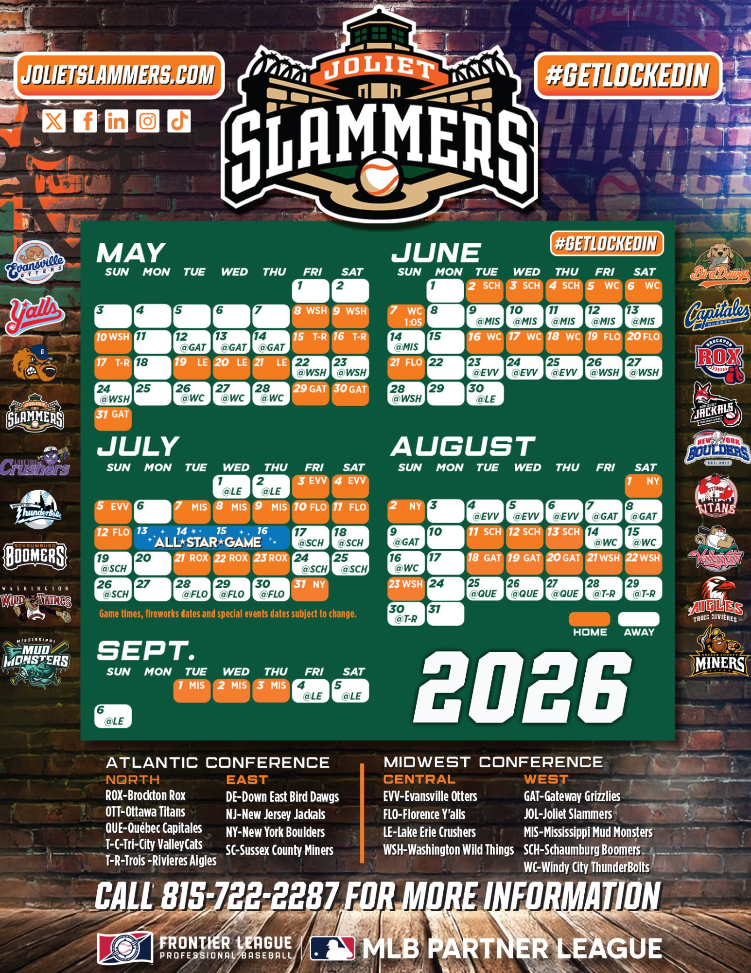 The Joliet Slammers play in downtown Joliet, Illinois, and are members of the professional, independent Frontier League. The Frontier League is the largest MLB Partner League with 16 teams spanning from the Mississippi River to the East Coast. Visit the Slammers online atwww.jolietslammers.com or call the ticket office at 815-722-2287 for more information! Don’t forget to “Like” the Slammers on Facebook atwww.facebook.com/jolietslammers, follow them on Instagram at @jolietslammersofficial or follow them on Twitter at @jolietslammers!